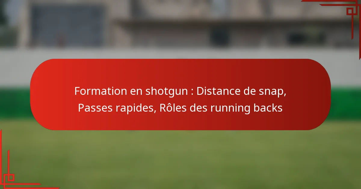La formation en shotgun est une stratégie offensive populaire dans le football qui met l’accent sur les passes rapides et les rôles efficaces des running backs. Les stratégies clés incluent la gestion de la distance de snap, l’exécution de passes rapides et la définition des responsabilités des running backs, qui contribuent toutes à une approche offensive dynamique.